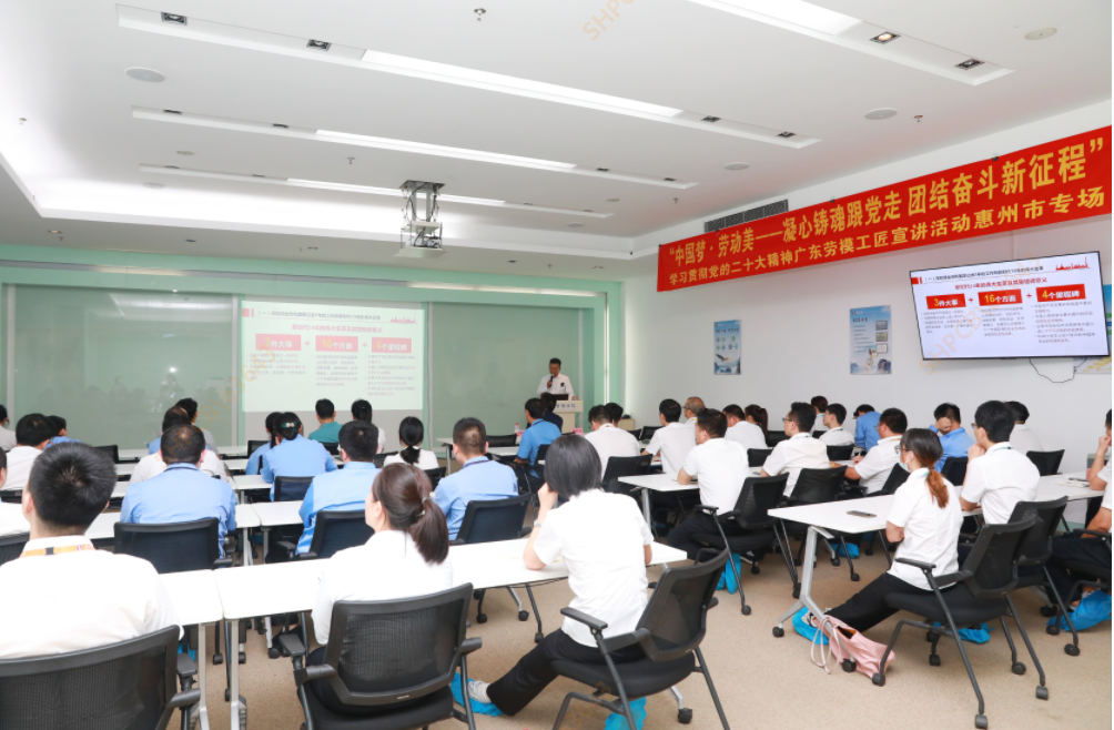 为深入学习宣传贯彻党的二十大精神,切实引领广大职工群众在新时代新征程上踔厉奋发、勇毅前行。5月16日晚,"中国梦·劳动美一凝心铸魂跟党走、团结奋斗新征程”学习贯彻党的二十大精神广东劳模工匠宣讲活动走进金年会科技。宣讲会由党的二十大代表、学习贯彻党的二十大精神市委宣讲团成员、中海油惠州石化有限公司技能专家高东斌授课,惠州市总工会组宣部部长李伟宏,组宣部高俊华、惠阳区总工会副书记钟耀辉、组宣部负责人米天平、公司工会主席/采购中心总监杨峰伟以及各中心/事业部代表50余人参加。